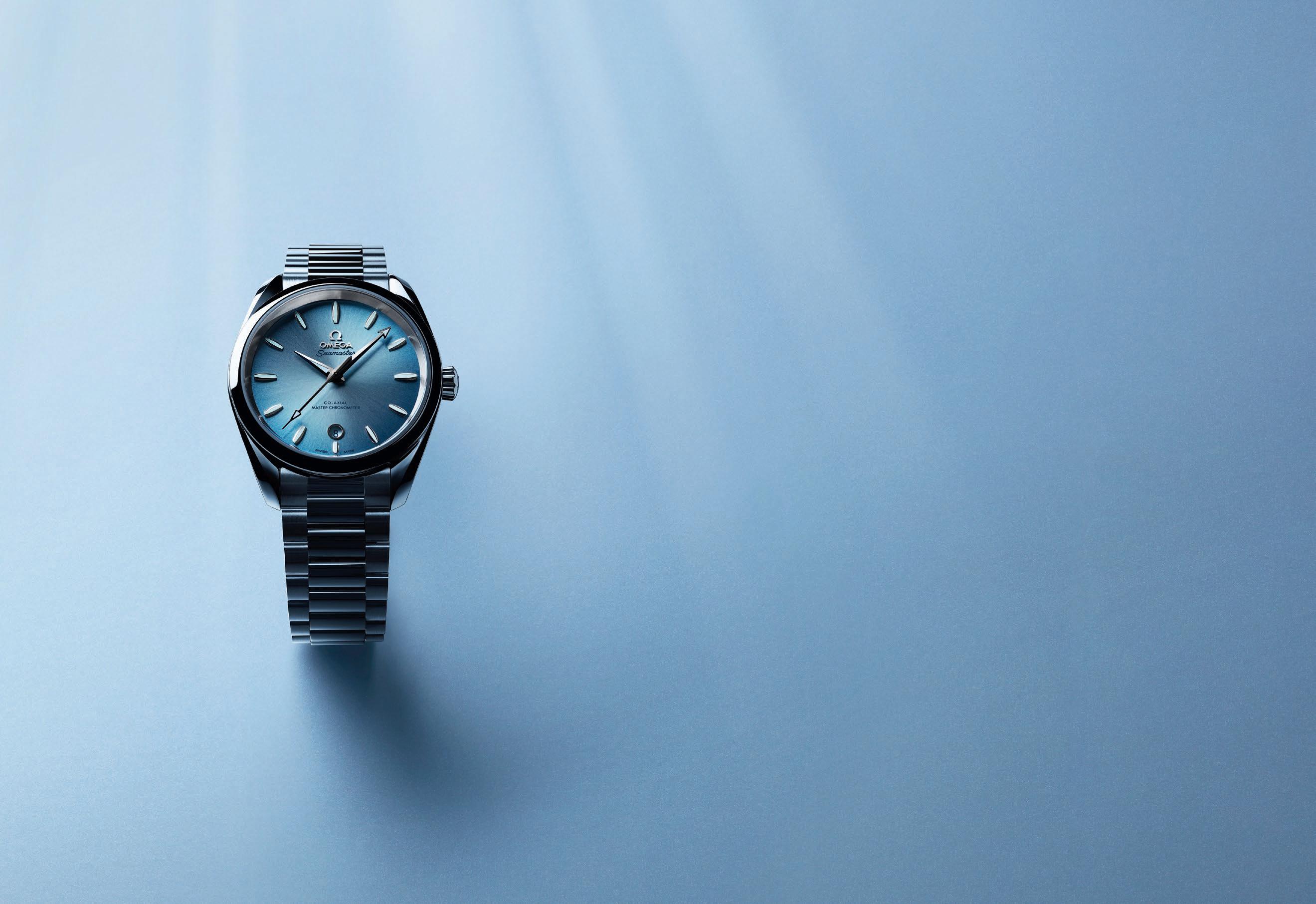 Die Seamaster hat alle erdenklichen Arten von Meeresabenteurern begleitet, von Freitauchern bis hin zu ganzen Rennjacht-Crews. Der Aqua Terra Co-Axial Master Chronometer aus Stahl mit 38 mm Durchmesser setzt diese Tradition fort. Die Uhr mit dem SeepferdchenLogo auf dem Gehäuseboden verfügt über ein neues Zifferblatt in «Summer Blue» mit Sonnenschliff und Farbverlauf, das auf die Wasserdichtigkeit bis 150 m verweist. Wir feiern unser maritimes Kultmodell mit dem Versprechen, auch weiterhin den Tiefen zu trotzen und neue Massstäbe in Sachen Präzision zu setzen.