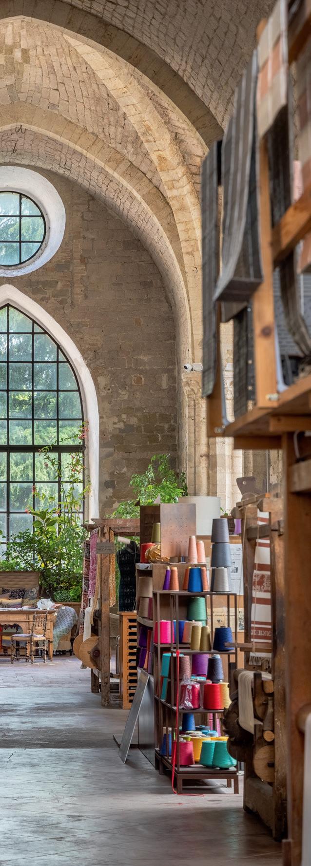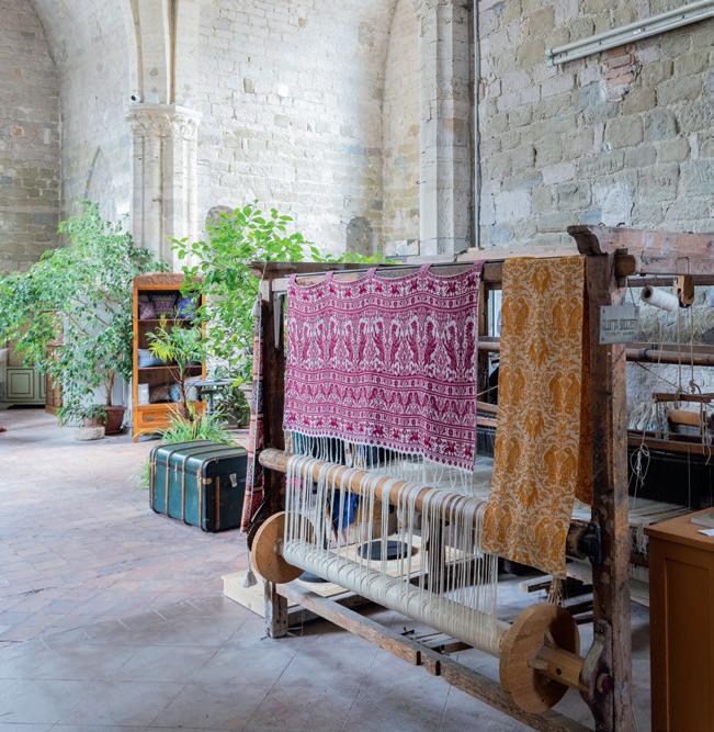 In einem ehemaligen Stadthaus in Perugia bewahrt das Studio Moretti Caselli eine fünf Generationen alte Glasmalerei-Tradition –hier leuchtet jedes Fensterbild wie ein Gemälde. Der Schmied Luca Peppoloni, in Spello ansässig, erschafft aus Eisen poetische Formen, in denen Rost nicht als Makel, sondern als Zeichen von Erinnerung gilt. Und im Museo-Atelier Giuditta Brozzetti, in einer alten Kirche gelegen, schlagen die Jacquard-Webstühle im Rhythmus der Zeit – hier lebt das textile Erbe Umbriens durch die Hände einer neuen Generation von Weberinnen weiter. Geleitet wird das Atelier von Marta Cucchia, der Urenkelin der Gründerin Giuditta Brozzetti. Auch die Aquarellfarben, wie sie bei A. Gallo Colors gefertigt werden, tragen die Region in sich: handgegossen aus Honig, ätherischen Ölen und Pigmenten – mit Sorgfalt und Respekt für Herkunft und Handwerk. Was all diese Orte verbindet, ist mehr als das Handwerk selbst – es ist eine Haltung: Langsamkeit als Qualität, Hingabe als Antrieb, Vergangenheit als Zukunft. The Place of Wonders Foundation unterstützt die beteiligten Werkstätten nicht nur kommunikativ, sondern auch
