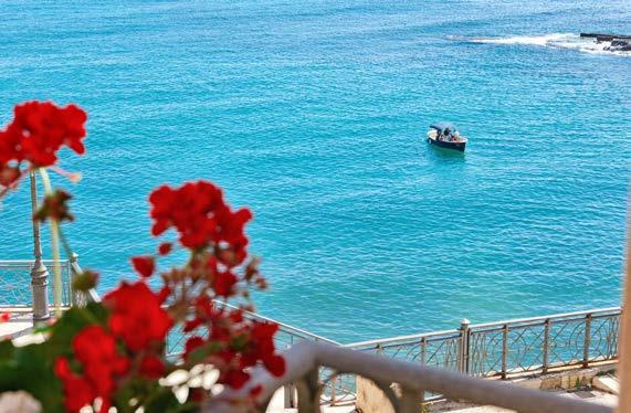 birds to nature reserves like the Lo Zingaro, with its wild cliffs and fragrant Mediterranean scrub. Olive groves, citrus orchards, and almond trees blanket much of the Sicilian countryside, adding to the island’s sensory richness. This blend of volcanic energy, lush vegetation, and marine beauty makes Sicily a natural paradise where wildness and cultivation coexist. Spring is a wonderful time to visit with beautiful fields of wild flowers providing a striking contrast to rolling green hills and deep blue skies reflecting against the lovely Mediterranean.