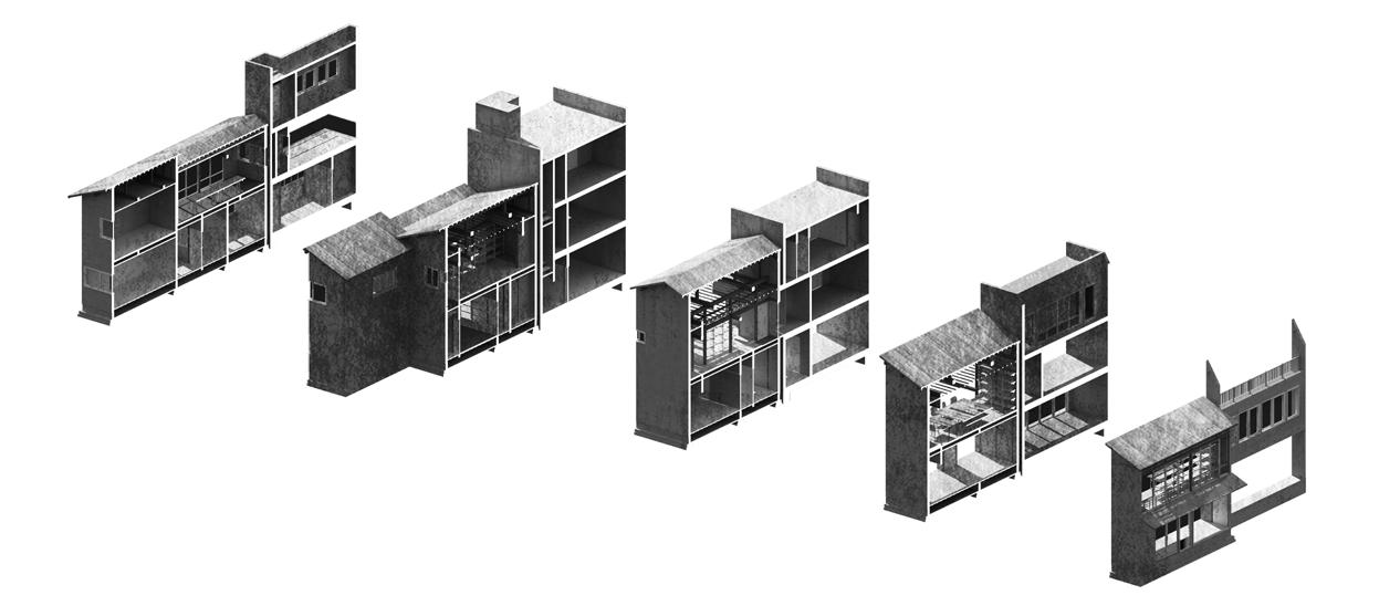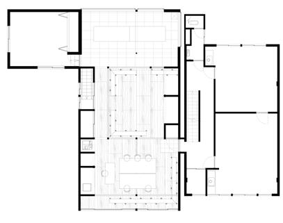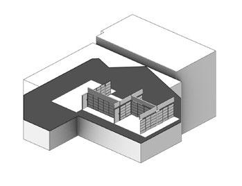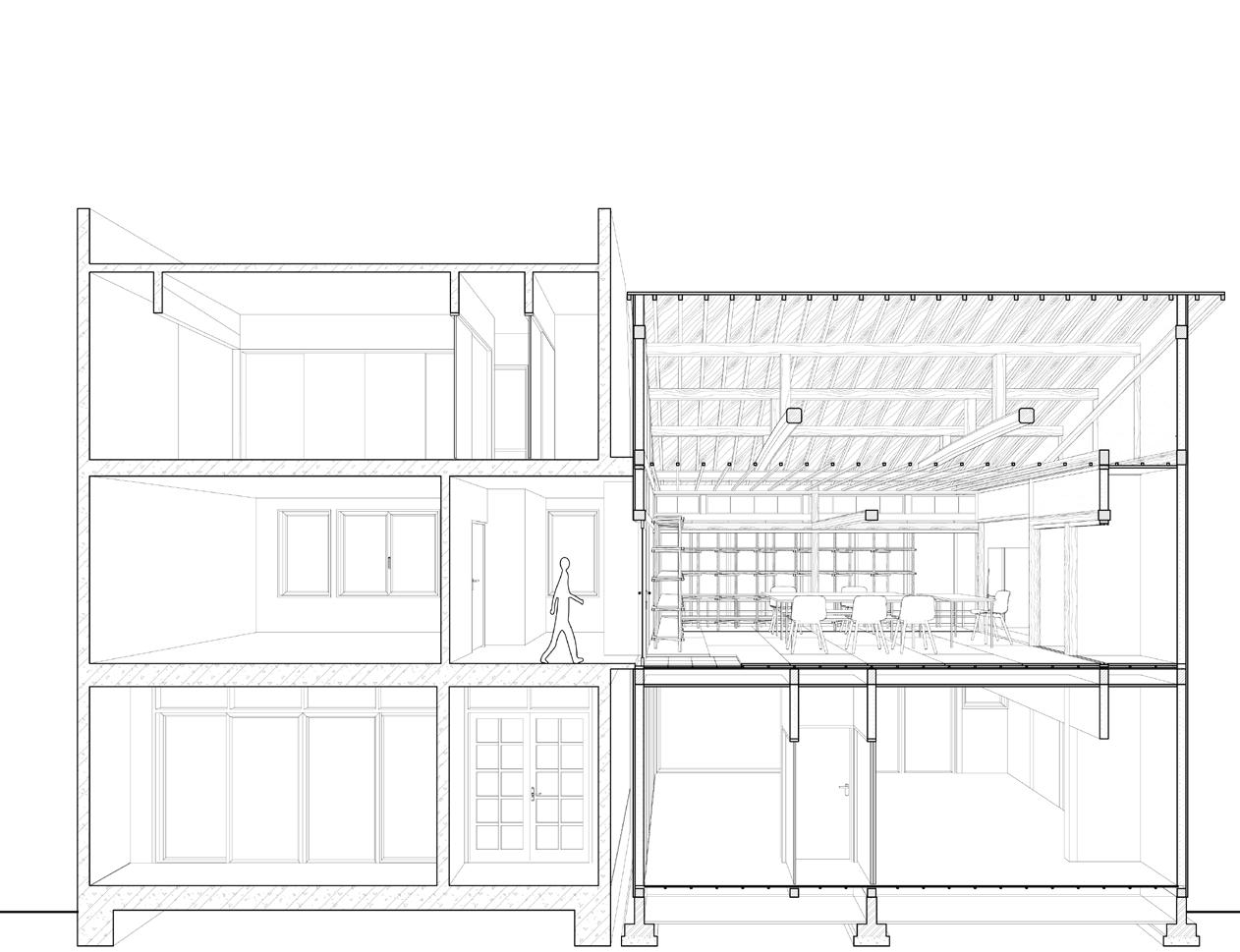 Referred in zoning, kitchen area was intervention instead of lounge area preserved, that make the kitchen looks like inserting box for the sense of development with the usage. Consist colouring of grey and expanding slab accelerate the contrast between old and new. 0 0.5 1 2 (m)
