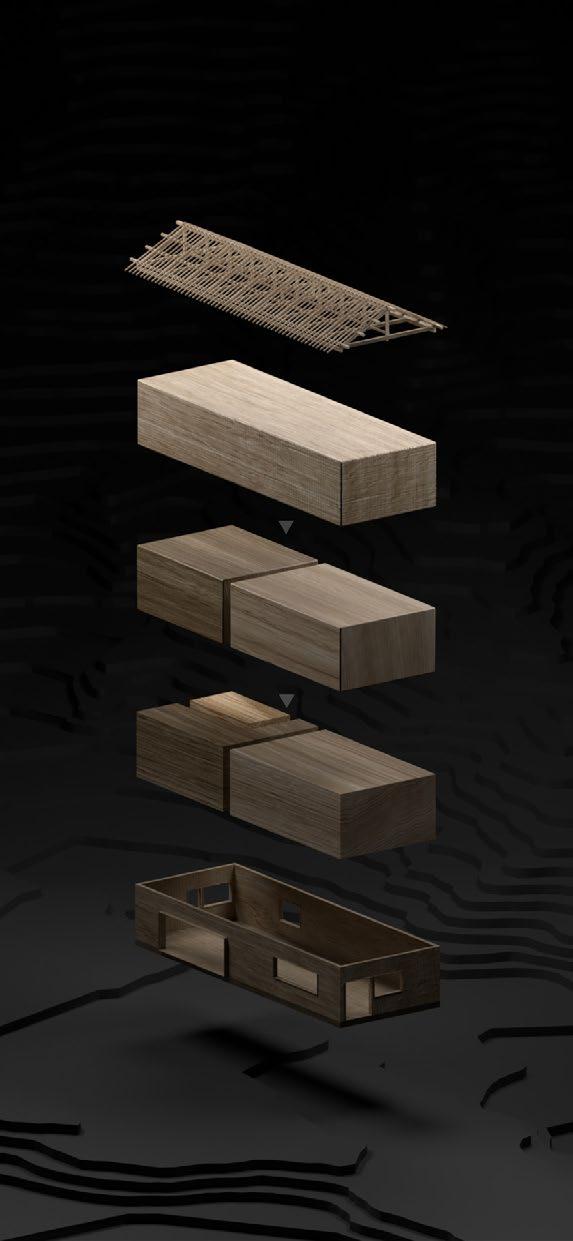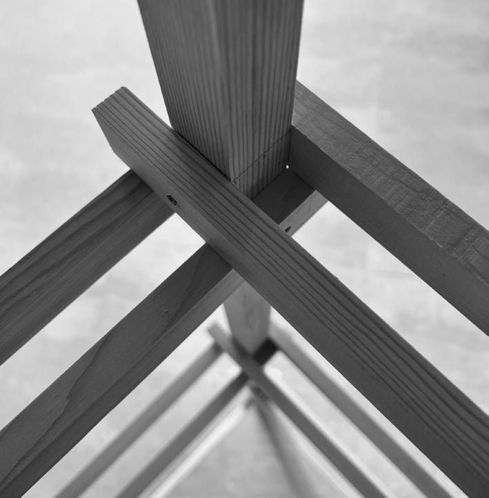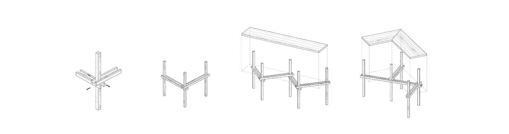 30x30 and 15x30 timber are connecting by 45 degree to extend the structure. Then just put on a board without the nails. Basically height of book-cellar based on ex-door units height that is round 1800mm that mean top of structure come front of exwall upon the aperture of doors to display models or something.