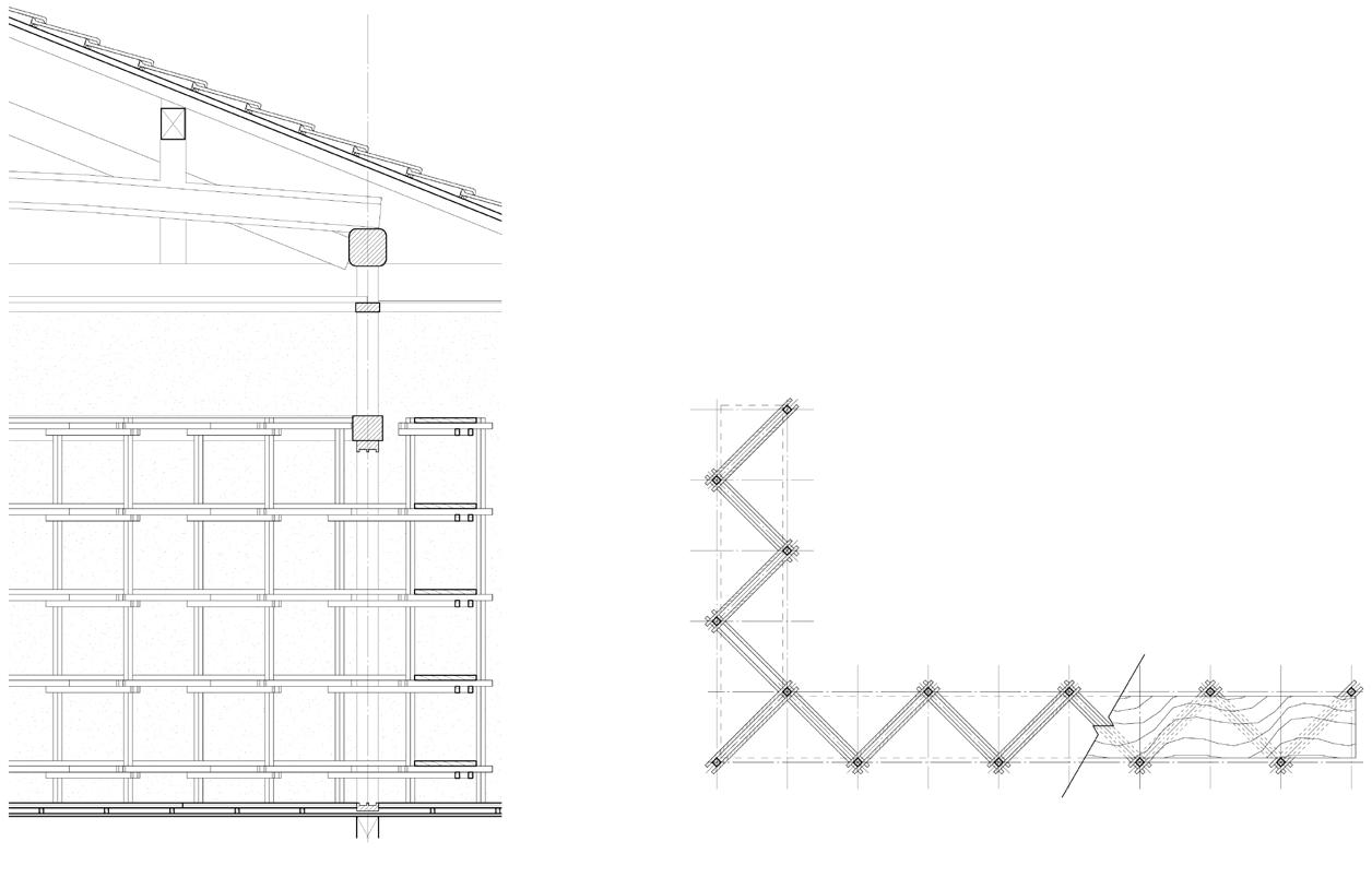 Both of ex-ceiling and ex-wall exposure the across lumber on the grid that emphasise design of book-cellar in common. Intentionally it’s been only painted or preserved ceiling beams.