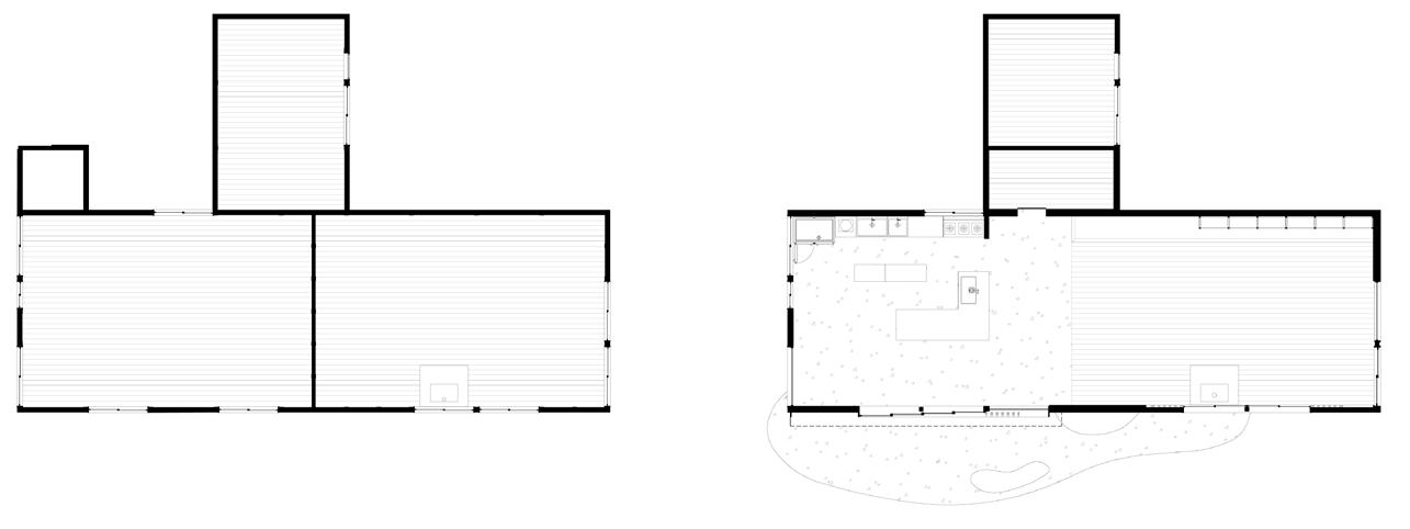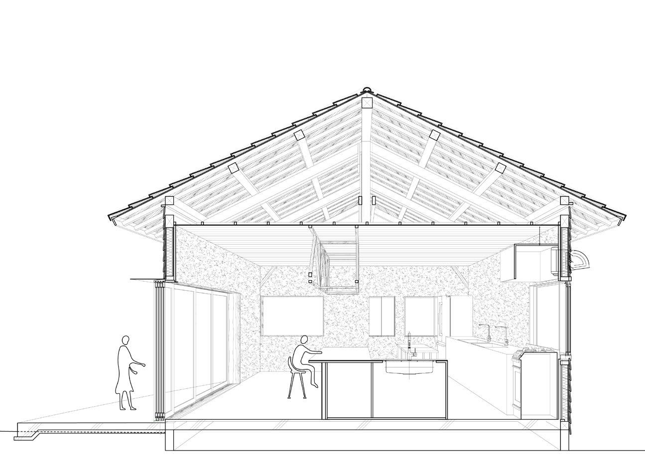 Intentionallythefloorandanywindowsofloungeareaarepreservedtofeelaflow of changing the building where farmer used to live when he was kid, moreover the saved funds will be poured to the kitchen’s renovation. Front straight glass rails and kitchen counter through the additional concrete floor expanded to outside physically make it exact connection inside out. So, completely half of this building has changed look like anew for not only materials but also usages.