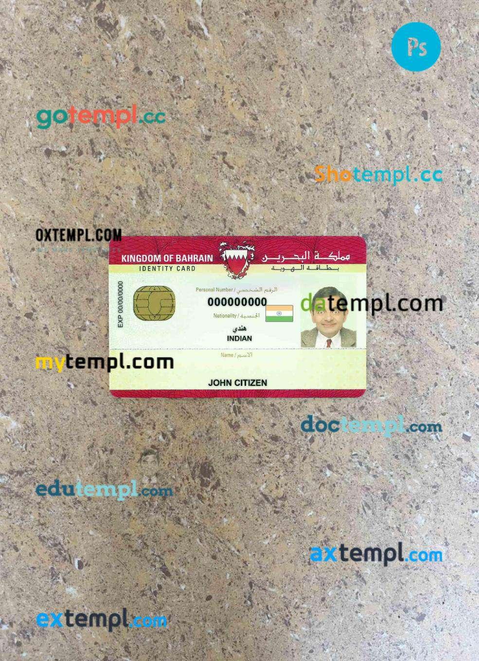 Our Bahraini ID card template offers two editable selections in one package: editable PSD files for both photo and scan looks.