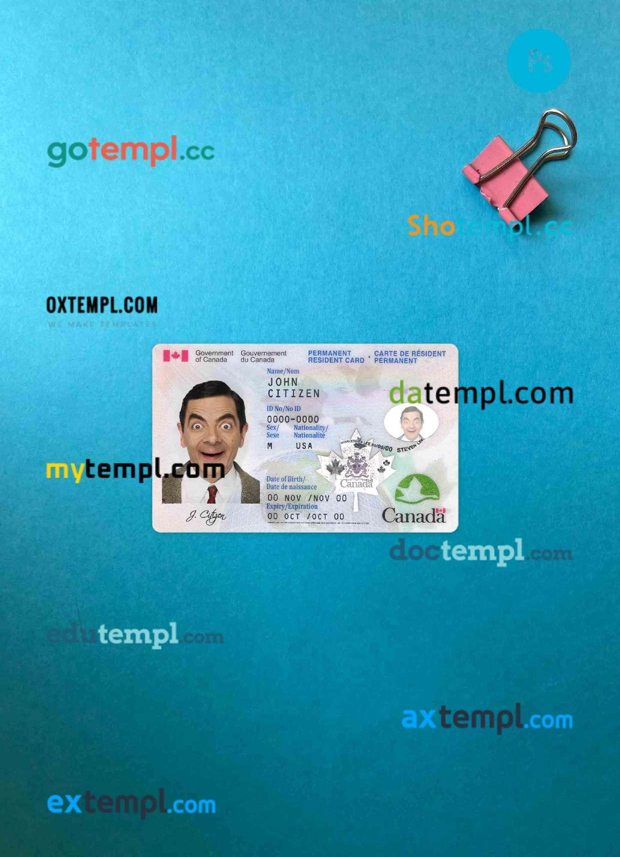 Our Canadian Permanent resident card template offers two options in one package: editable PSD files for both photo and scan looks.
