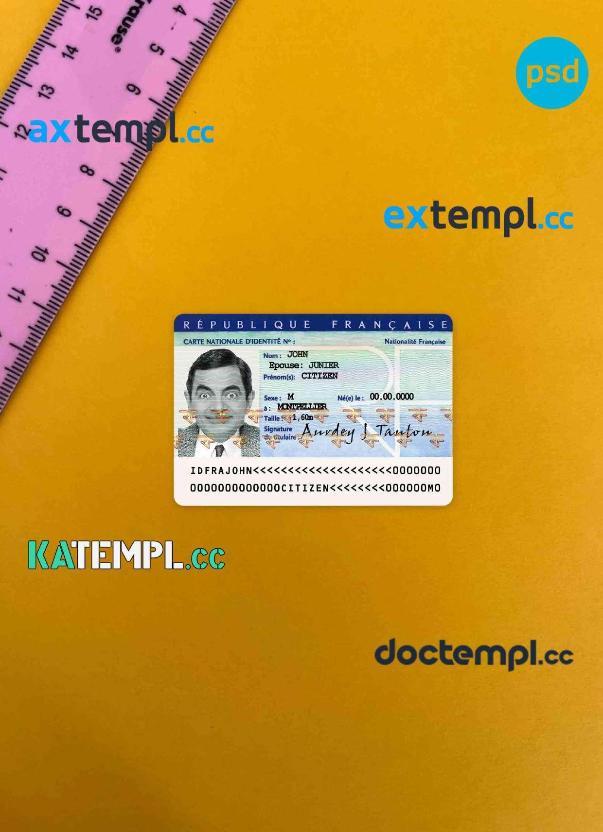 Our French ID card template offers two options in one package: editable PSD files for both photo and scan looks.