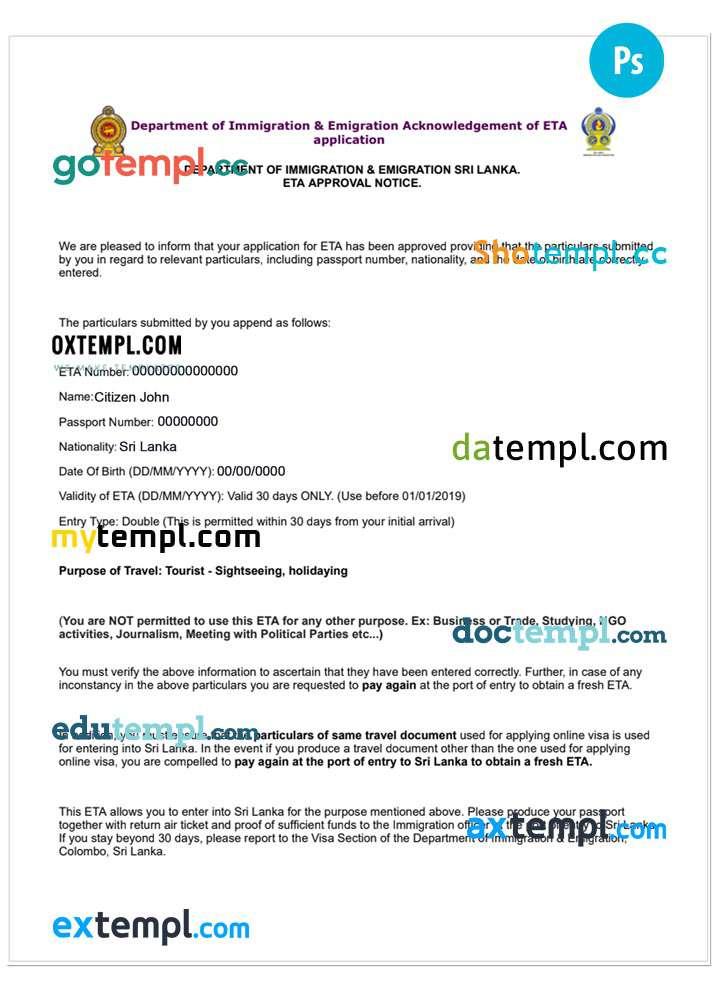 Fully scalable and editable Sri Lanka electronic travel visa PSD example at the best price – well organized, named & very easy to use.