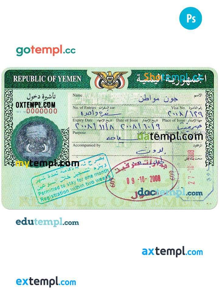 Fully scalable and editable Yemeni entry visa example at the best price – well organized, named & very easy to use.