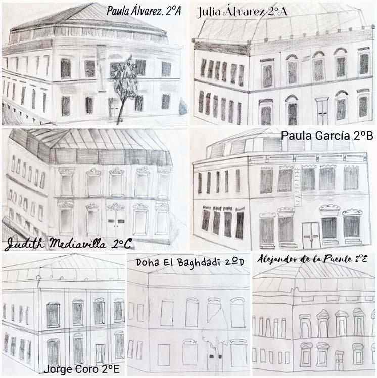 As a result of the activity, you can see here some sketches of the buildings made by some students and the small texts that some of them read to their classmates.