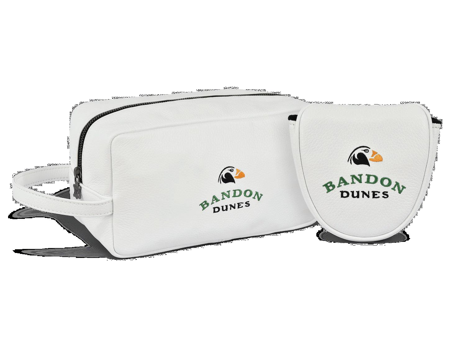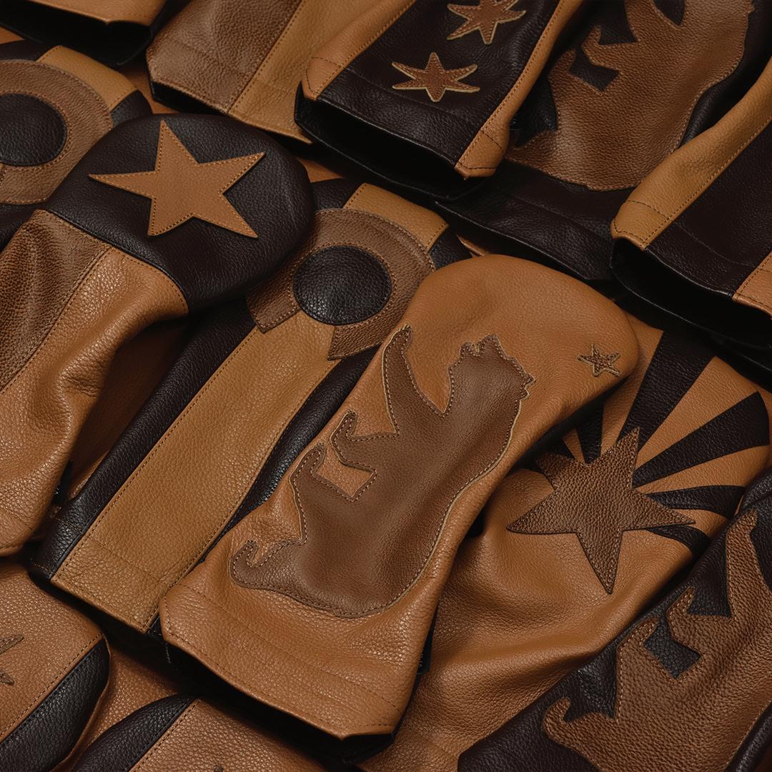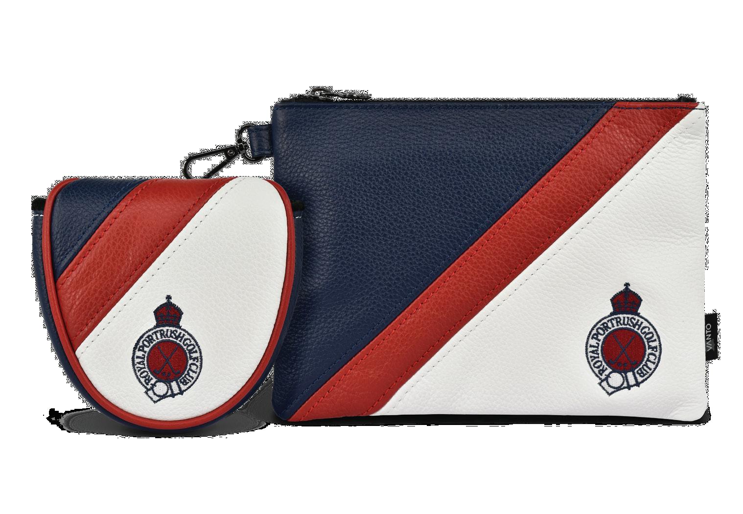 Fuses craftsmanship and luxury across scorecard holders and yardage book covers in various embroidery and leather options.