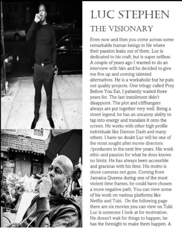 Visionary is someone who sees something that other people do not see, Luc embodies that. His work with legendary figures in the culture like Damon Dash speaks to his growth. Dame has been associated with the likes of Jay-Z, Kanye West, and Kevin Hart. With names like that Luc is heading in the right direction. I cannot wait to see where he takes this to. At the top of the year he was pretty much booked for the whole year.
