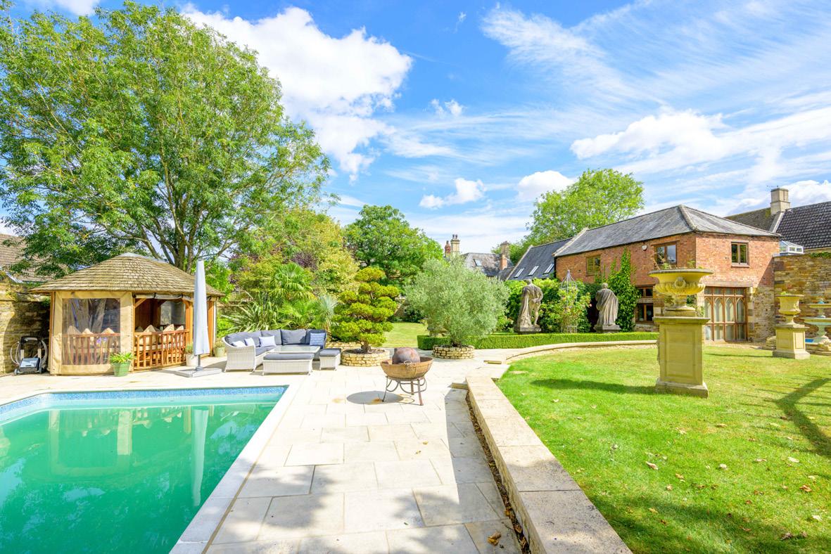 In the heart of the charming village of Manton is the magnificent Old Hall graced with a fine early eighteenth century façade but dating back to 1688, as stated on a rear gable. The three-storey stone residence and its adjoining outbuildings provide an extraordinary amount of accommodation. In a quiet and private position nestling between neighbours but shielded by mature trees, the walled gardens are verdant, sunny sanctuaries including an impressive summerhouse overlooking a heated outdoor pool.