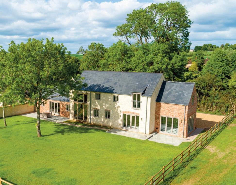 Meadow Barn is a substantial new residence, one of two stylish new country homes set in the Rutland countryside just outside the village of Market Overton, recently completed by award winning local developer Distinctive Developments. Constructed of locally sourced coursed rubble and ashlar stone and reclaimed style red brick set under a blue slate roof, this impressive new home has been designed and built with sustainability, energy efficiency and low maintenance in mind.