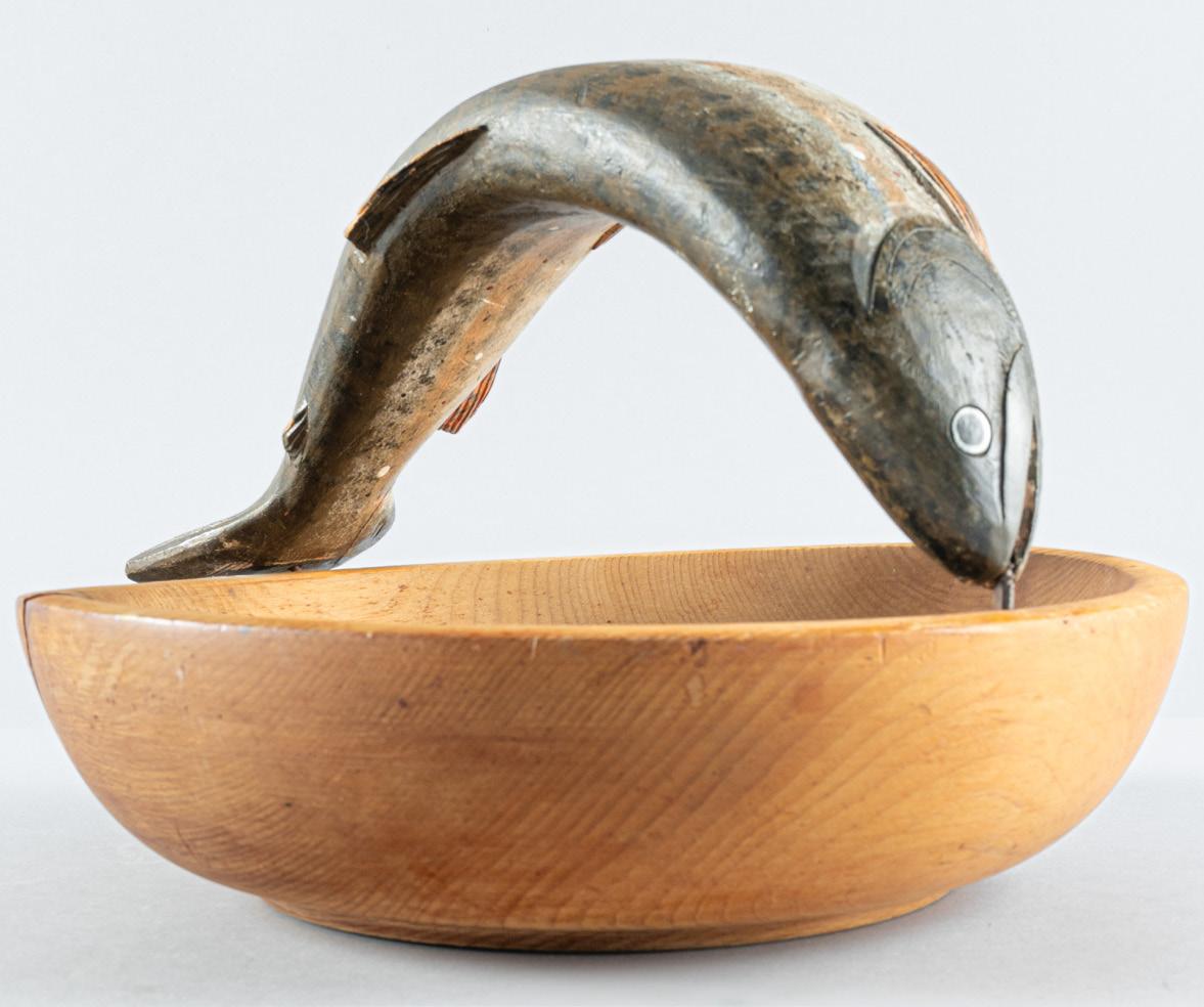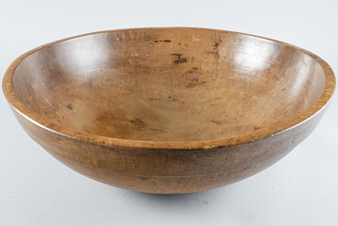 A vintage hand-turned wooden bowl, 7 1/2 x 21 3/4 inches.
