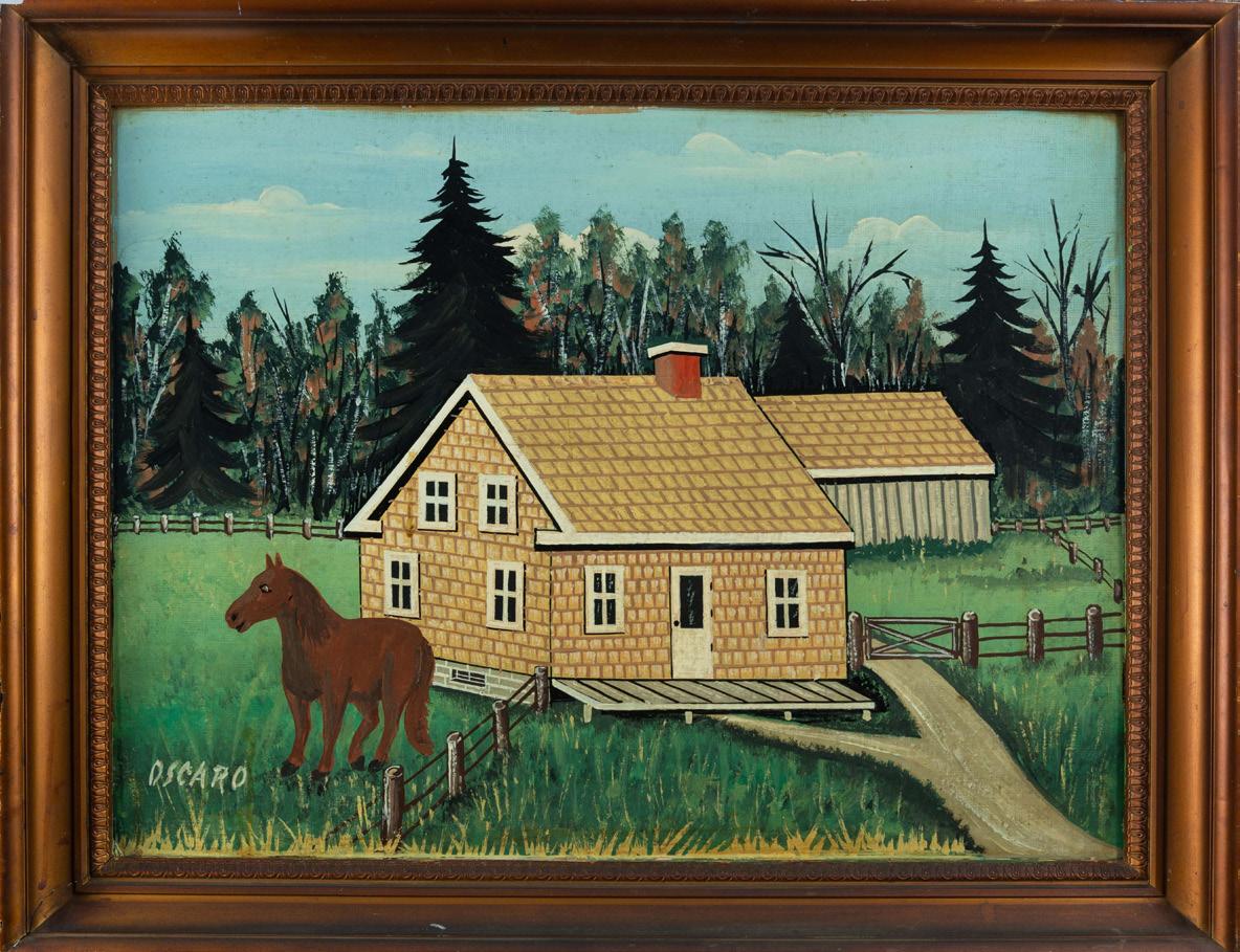 Untitled, farm scape, oil on panel, signed lower right, 5 1/2” H, 7 1/2” W. Provenance: consigned by the artist’s family. Robert Hyndman was born in Edmonton, Alberta. He studied art at the Central School for Arts and Crafts (London, England). In 1939, he returned to Canada and joined the Royal Canadian Air Force - he flew Spitfires over the English Channel. In 2001, he received the Art & Heritage Award from the City of Ottawa, and in 2001, on the 100th Anniversary of the election of Canadian former Prime Minister Sir Wilfrid Laurier, he presented his portrait of Prime Minister Laurier to then Prime Minister Jean Chrétien. In 2003, he received the Victor Tolgesy Arts Award from the City of Ottawa.