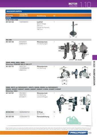 M968, M975 (ab DBD0040001), M9078, M9086, M9094 (ab DBD0055001) 9080M, 9080MT, 9085MT, 9090M, 9090MT, 9095MT, 9100M, 9100MT, 9105MT Motortyp: SISU 00 128 107 354190A1 Wasserpumpe 1 64 354273A1 mit Dichtung 87720071 und 2 O-Ringen