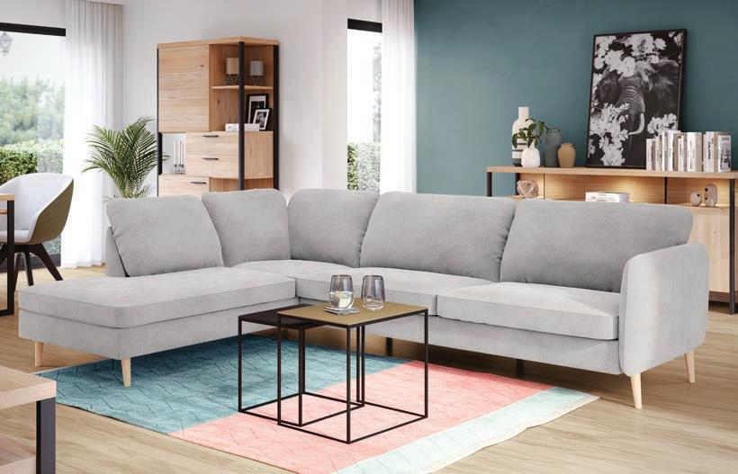 ELEGANTNE METALNE NOGICE pružaju čvrstoću i stabilnost, dok njihova visina omogućuje lakše čišćenje. Kombinacija suvremenog dizajna kutne garniture Alegra, kao i detalja od masivnog drva čini je pravim odabirom za moderne domove.