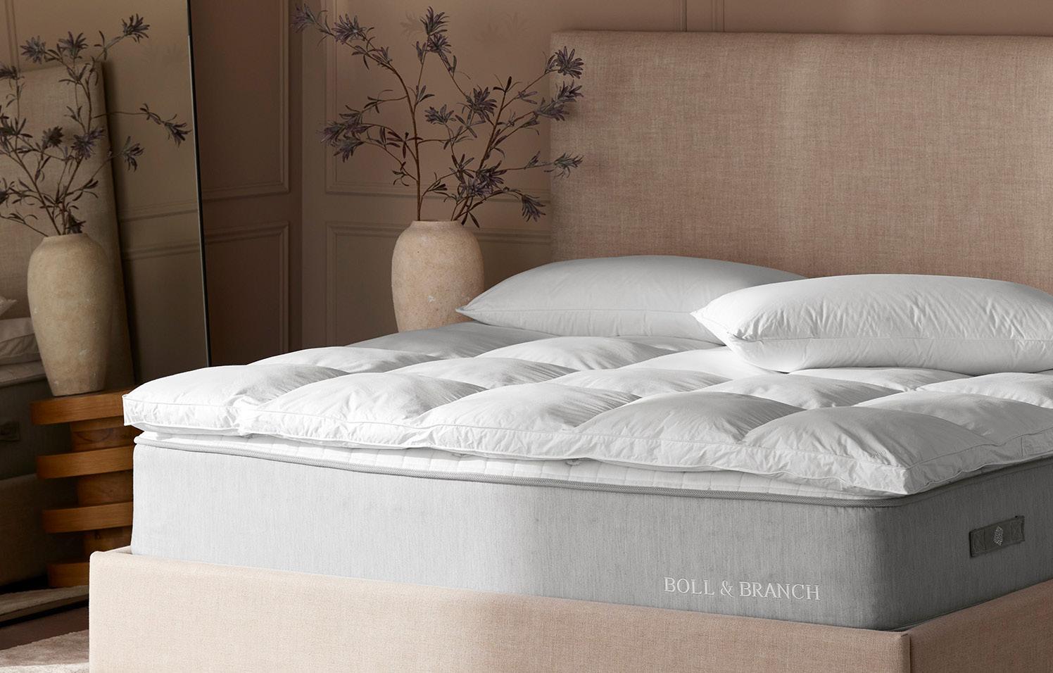Create an extra layer of luxurious, soft support. This PrimaLoft® fiberbed mattress topper adds the perfect cloudlike comfort to any bed. 100% Organic cotton is soft and durable. Side handles allow you to fluff with ease.