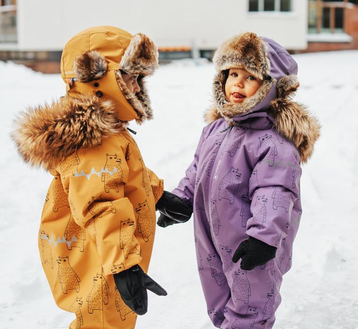 The Puffin Snowsuit is warm, windproof and has an exceptional ventilation ability, benefits that are important for small children. The PrimaLoft® insulation gives a fantastic softness and thermal insulation to minimal weight and offers an optimal freedom of movement. All seams are taped and the overalls have waterproof zippers from YKK. Removable hood. The water-repellent impregnation (DWR) is 100% fluorocarbon-free, BIONIC Finish. Expandable legs and arms.