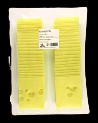 Queso emmental natural de alta calidad, en lonchas. Elaborado con sal y leche de vaca, con 45% de materia grasa. Ideal paratodotipode bocadillosy sándwiches