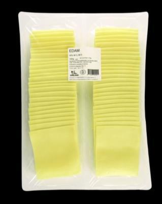 Queso edam con sal, en lonchas, de textura semidura y color amarillento. Elaborado con leche de vaca, con 40% de materia grasa Múltiples usos Bandejaincluye50lonchasde 20gc/una