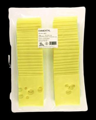 Queso emmental con sal en lonchas, elaborado con leche de vaca, con 45% de materia grasa. Ideal para bocadillos y sándwiches.Labandejaincluye50lonchasde 20gc/una.