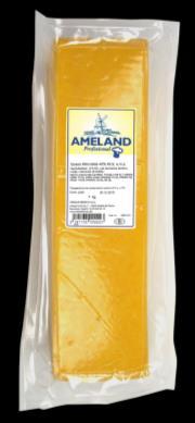 Queso cheddar blanco de pasta dura en bloque, elaborado con sal y leche de vaca con 50% de materia grasa. Sabor intenso y textura lisa,ideal parabocadillos,hamburguesasy ensaladas.