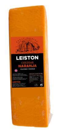 Queso cheddar naranja en barra, elaborado en Inglaterra, en la región de Cheshire de manera artesanal con leche de vaca Textura cremosa, con sabor suave. Ideal para topo tipo de usos:fundir,gratinar,acompañarplatosrallar,cocinary pizzas.