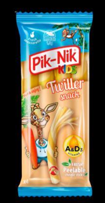 Palitos de queso mozzarella y zanahoria, bajos en sal, saludables y divertidos.Snackidealparaniños yfácilde pelar. Elaboradoconleche de vaca con 40% de materia g<rasa. Fuente natural de proteínas, mineralesy vitaminas.Unatiraequivaleaunvasodeleche.