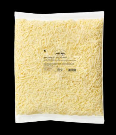 Queso mozzarella rallado, con un 30% de mozzarella pura y un 70% de análogo. Elaborado con sal y leche de vaca. Ideal parapastasy pizzas.