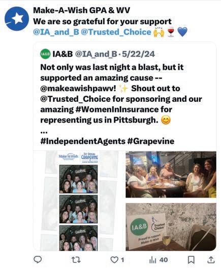 This spring IA&B women in insurance supported two events benefiting Make-A-Wish: the 2nd Annual Evening of Wishes, in Mechanicsburg, PA, and the 21st Annual Grapevine: A Wine Tasting Event, in Pittsburgh, PA. Trusted Choice –the consumer-facing brand of the Big “I” (IA&B’s national affiliate in Pennsylvania and Delaware) – sponsored both events.