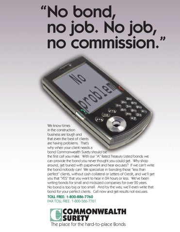 We know times in the construction business are tough and that even the best of clients are having problems. That’s why when your client needs a bond Commonwealth Surety should be the first call you make. With our “A” Rated Treasury Listed bonds we can provide the bond you never thought you could get. Why shop around, get buried with paperwork and hear excuses? If we can’t write the bond nobody can! We specialize in bonding those “less than perfect” clients, without cash collateral or Letters of Credit, and we’ll get you that “YES” that you want to hear in 24 hours or less. We’ve been writing bonds for small and midsized companies for over 20 years. No bond is too big or too small. And by the way, we’ll even write that bond for your perfect clients. Call now and get results not excuses. TOLL FREE: 1-800-886-7760 FAX TOLL FREE: 1-800-566-7761