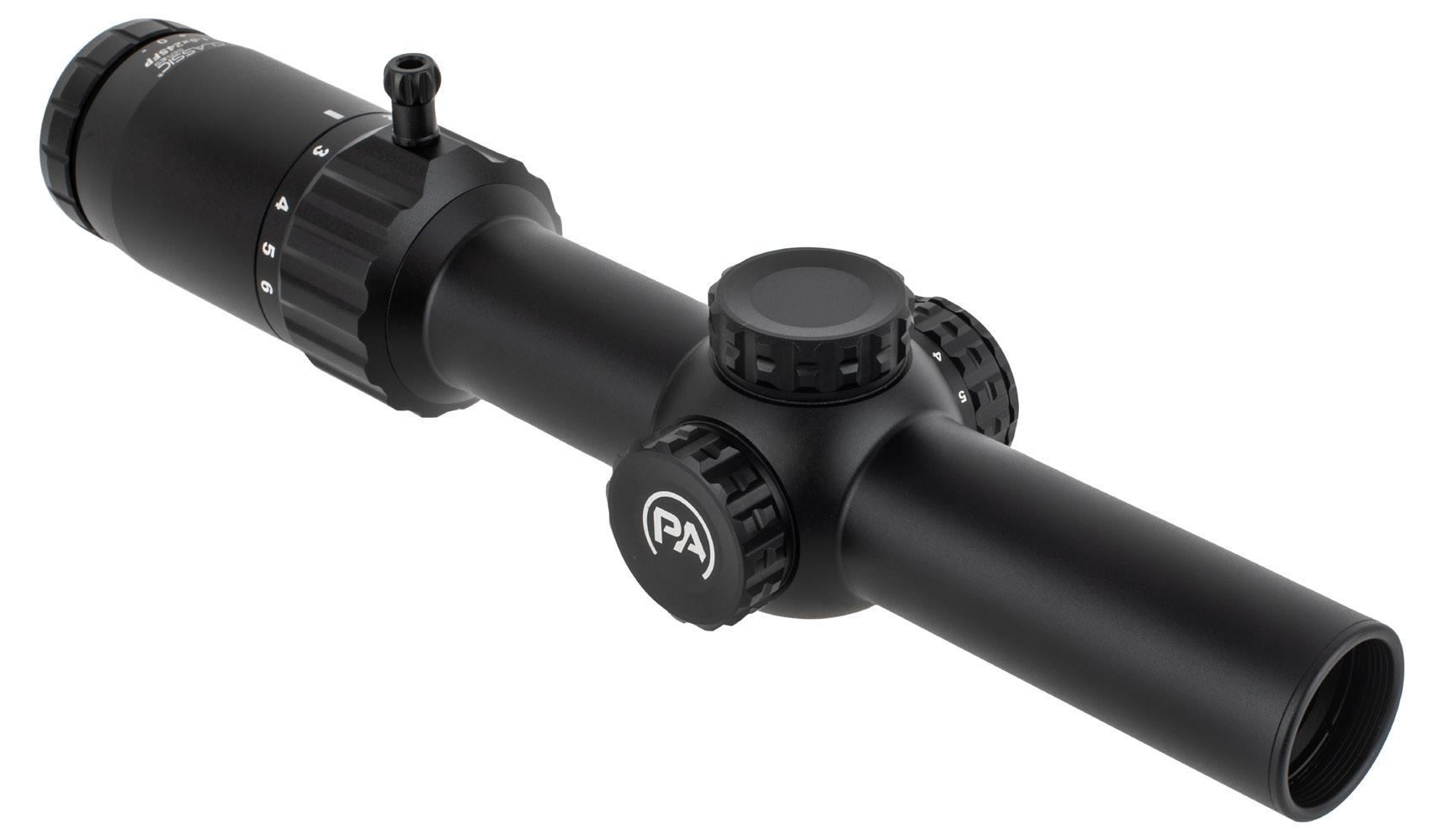• 5-25 Magnification Range with FFP Reticle for Optimal Long-Range Performance • High-quality 56mm Objective Lens that improves exit pupil and light transmission for superior optical performance • 34mm Tube Diameter for Extended Elevation Range • Parallax Adjustment from 10yd to Infinity • 6 Illumination Settings with ‘Off’ Setting in between • Built-in Modular Magnification Throw Lever • Integrated Return-To-Zero and Zero Set Elevation Turret • User Configurable Capped/Exposed Windage Turret • Tested and proven for durability with extensive ‘live fire’ testing • Backed by Primary Arms Optics Lifetime Warranty
