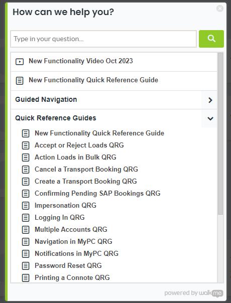 Step-by-step instructions for the common MyPC tasks (e.g. updating pallet stacks, searching for a purchase order, printing labels, PODs and more) can be found via the help tile on the MyPC portal.