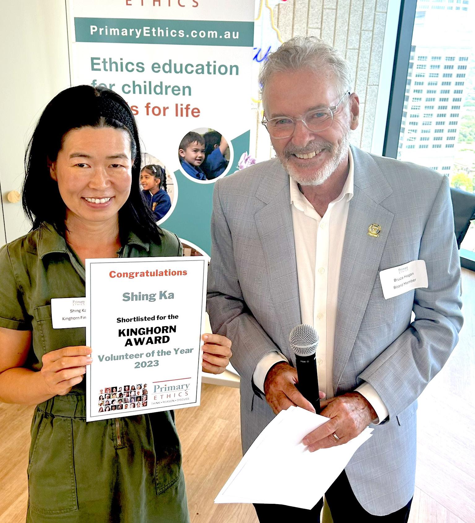 The 2024 Kinghorn Volunteer of the Year Award was the first to be split between two winners – an individual, regional manager Jim Neely, who covers the Queanbeyan district in southern NSW, and a team, the Northmead Public School ethics team in western Sydney.