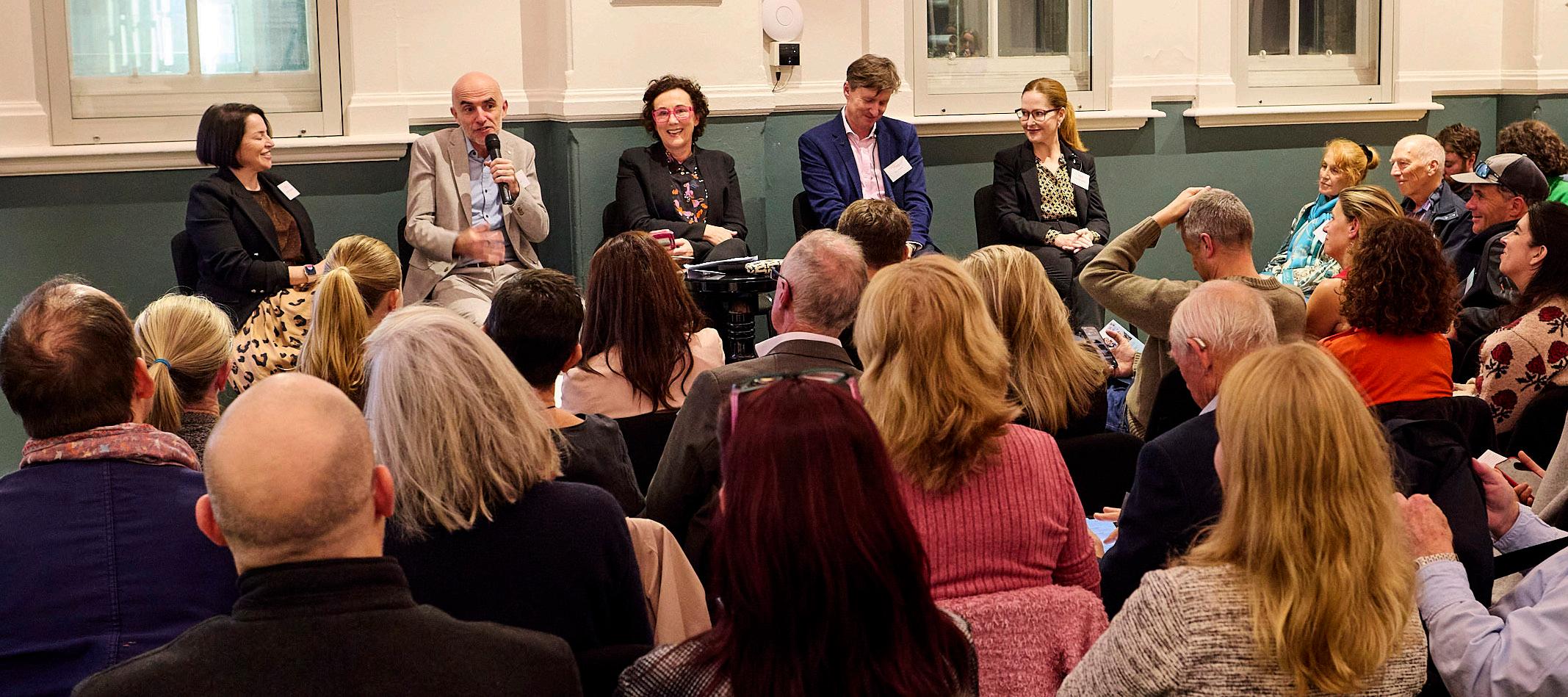 The panel: Kelby Mason, Tim Power, Sarah Macdonald, Gabe Corbett and Sinéad Fitzgerald