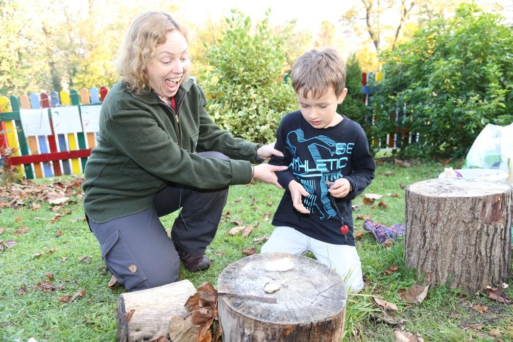 Tools are used in Forest Schools in a traditional woodland manner and are introduced gradually with a careful safety-first approach. The use of tools promotes confidence, and develops both their gross and fine motor skills.
