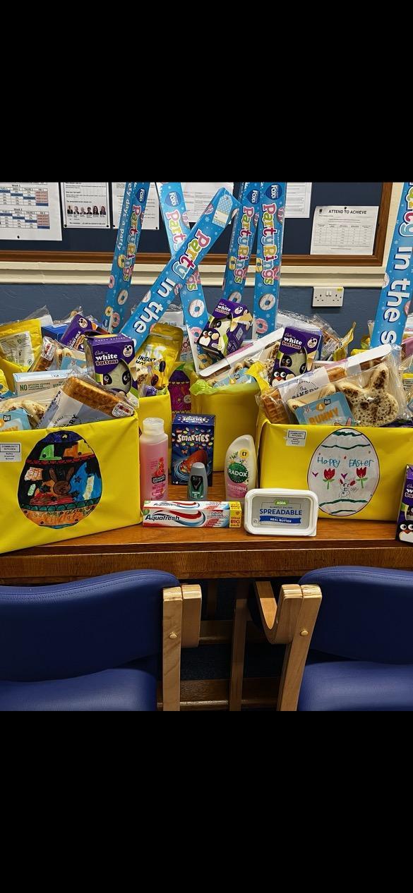 Following some extremely generous donations from Birstall Rovers FC and Gary Scott (Grounds Maintenance) as well as monetary donations from staff (and their families) at BGS, Community Kitchen were able to donate 16 Easter Hampers to local families for them to enjoy throughout the holidays.