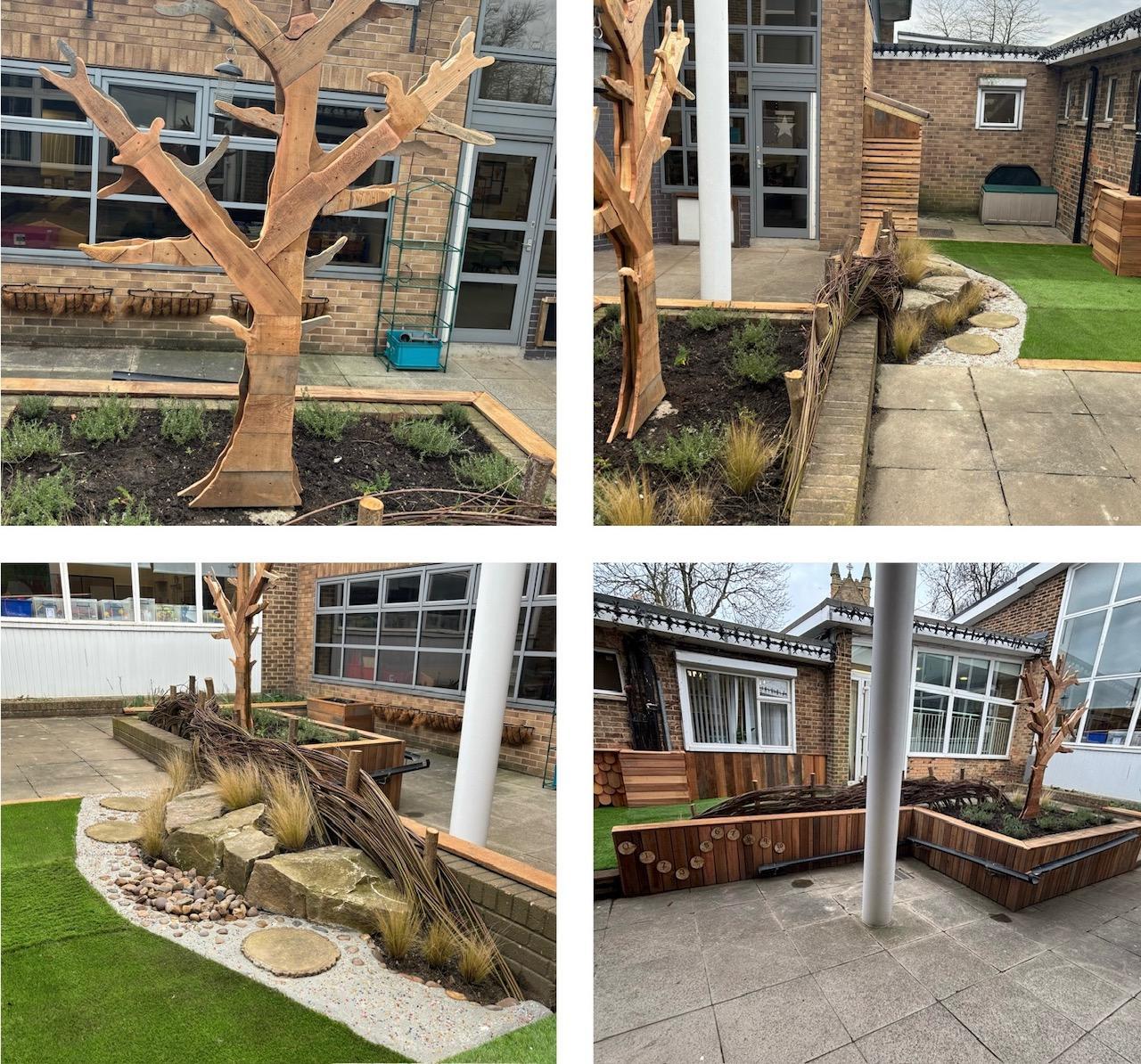We had a space in the centre of our school which was overgrown and unloved. Over the last half term, thanks to grant funding from Groundwork UK- Bupa foundation Green Community Grants and the hard work and amazing skills of Liam Clark, we have been able to transform the space into a completely safe and secure sensory garden.