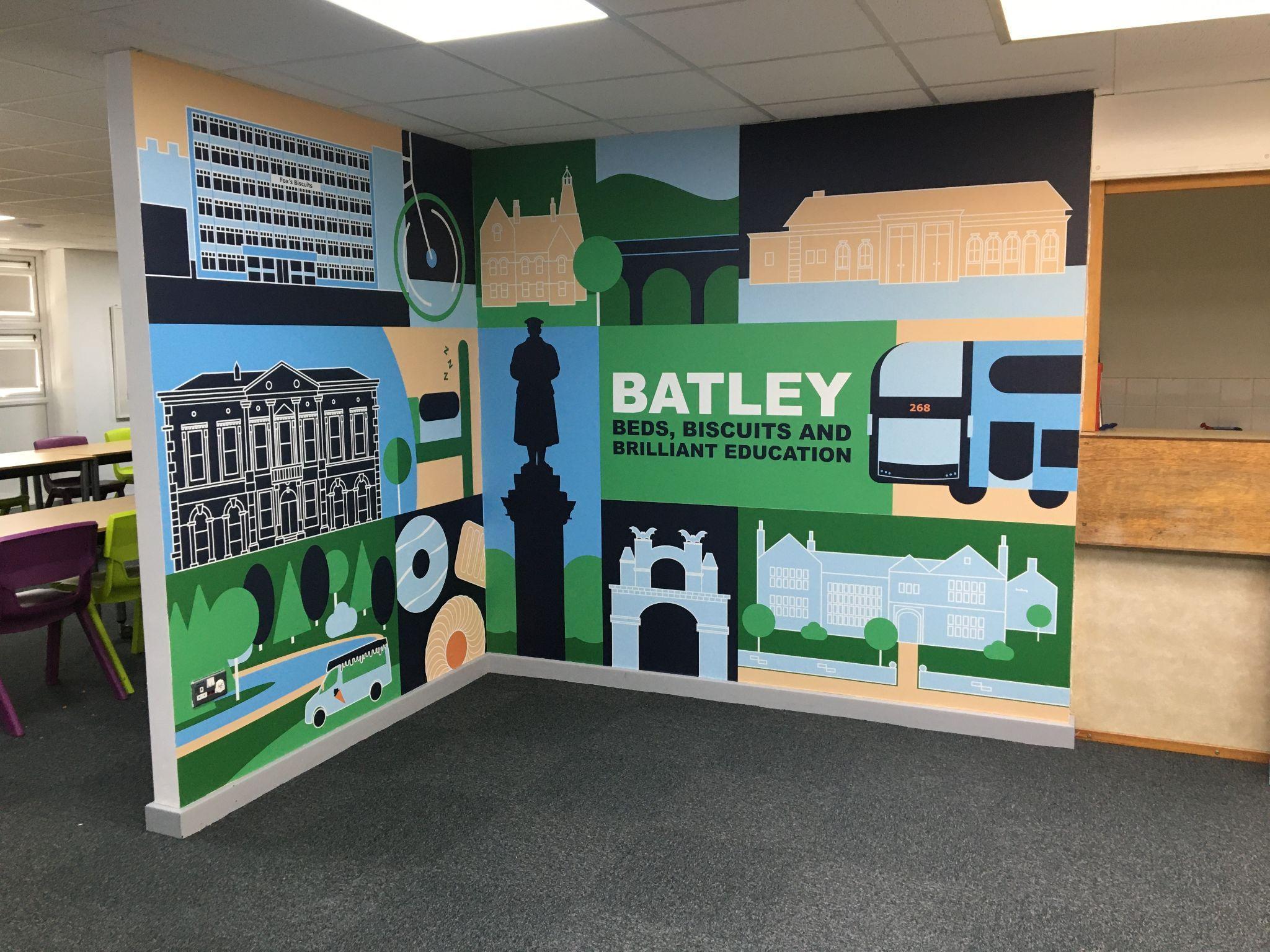 We’ve recently had some fantastic wall art fitted in the conference room and lecture theatre, which focuses on our local Batley community; the history and focal points. Please take a look if you get the chance!