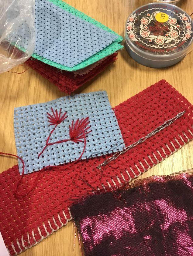 Our craft-ernoon is growing weekly, with some parents/carers learning how to sew on buttons, through to those who are learning how to use a machine and others who already have their own craft expertise, such as crochet that they are teaching others.