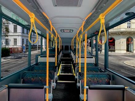 Other features include: full ECAS air suspension with twin front air bags and four rear air bags; Sachs shock absorbers and kneeling function; a Yutong steering axle with ZF 8098 electro-hydraulic energy saving power-assisted steering; and a Meritor drive axle. The rear axle, including all suspension and braking, is the same as a conventional diesel vehicle for ease of maintenance. It also features an air brake system with front and rear disc brakes.