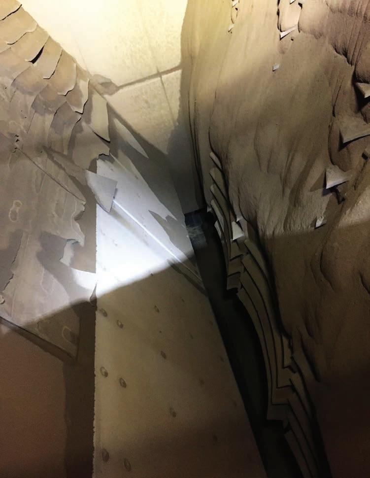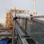 Chemical corrosion is an even more challenging bulk material handling subject. A suggested simple solution is often to swap mild steel for stainless steel or polymer alternatives. However, if the material is combustible, a polymer equivalent might not be acceptable due to inability to prevent accumulation of static electricity. Chemicals such as solid sulphur change their corrosive properties when mixed with water vapour resulting in a compound capable of corroding various grades stainless steels. A recent event of a gypsum being conveyed at over 1000 tonnes per hour, contained unknown trace elements of phosphoric acid, resulting in substantial corrosion. Initially, the site utilised styrene butadiene (SBR) rubber lagged conveyor rollers, which also wore out due to the SBR’s incompatibility to handle the chemical. This was fixed by changing the rubber to a neoprene lagging following some chemical testing and research of the bulk material exposed to various lagging types.