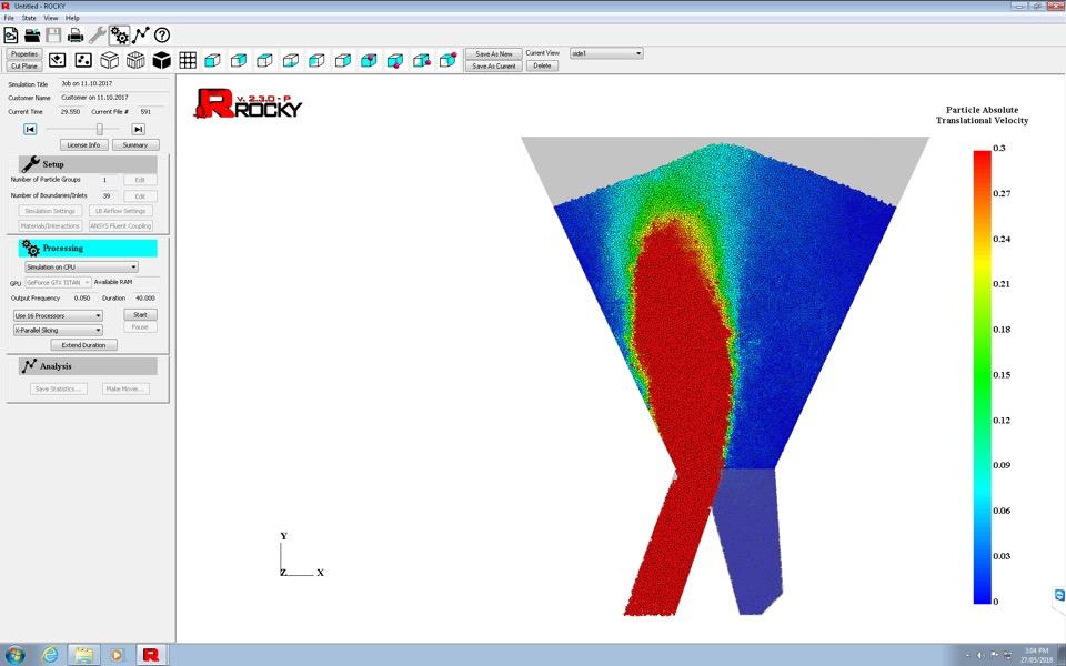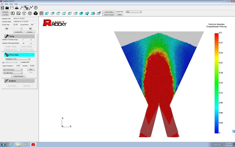 The wall loads during the discharge operation were studied by performing DEM simulation for the hopper with only one leg chute operating, as shown in