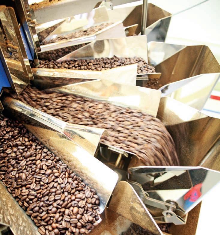 With a strong focus on automation, solutions like Ishida check weighing equipment can verify package weight and detect missing components. In co ee applications, Ishida Multihead Weigher & Baggers are said to o er high-speed, precise weighing and bagging. Co ee is weighed by the multihead weigher selecting the best combination from the available 14 weigh hoppers on a circular machine. e computer selects normally three buckets that’ll get closest to the target weight.