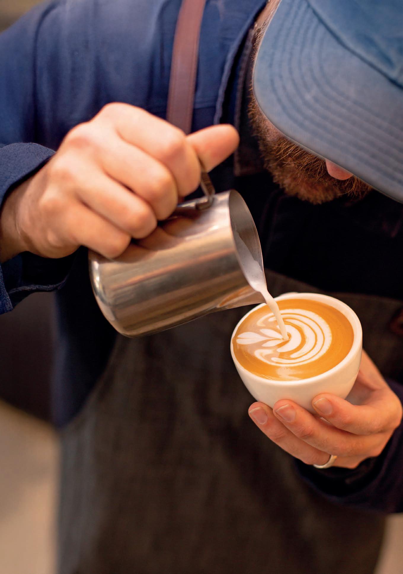 I really love co ee, but I feel like it is o en explained in a complicated way. I’ve always liked to learn in a simpler style, and latte art is great for that because it’s visual – you can see what’s happening and you don’t need to talk about di erent sensory aspects.