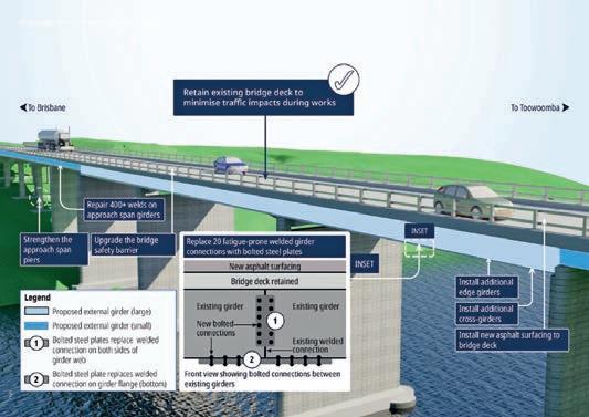 The graphic shows the Bremer River westbound bridge and details of the rehabilitation works.