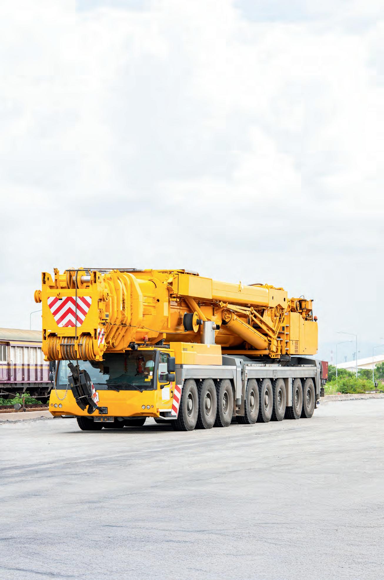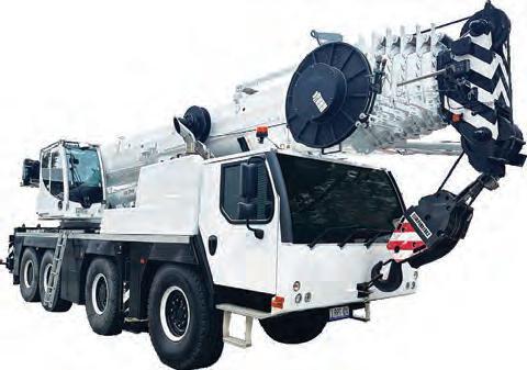 ACCORDING TO GROVE, THE MEGATRAK® suspension system is the optimum driveline available on the market today. It’s revolutionary design features an independent hydropneumatic system with hydraulic lockout acting on all wheels. The suspension can be raised 170 millimetres or lowered 130 millimetres both longitudinally and transversely and features an automatic leveling system for on-highway travel.