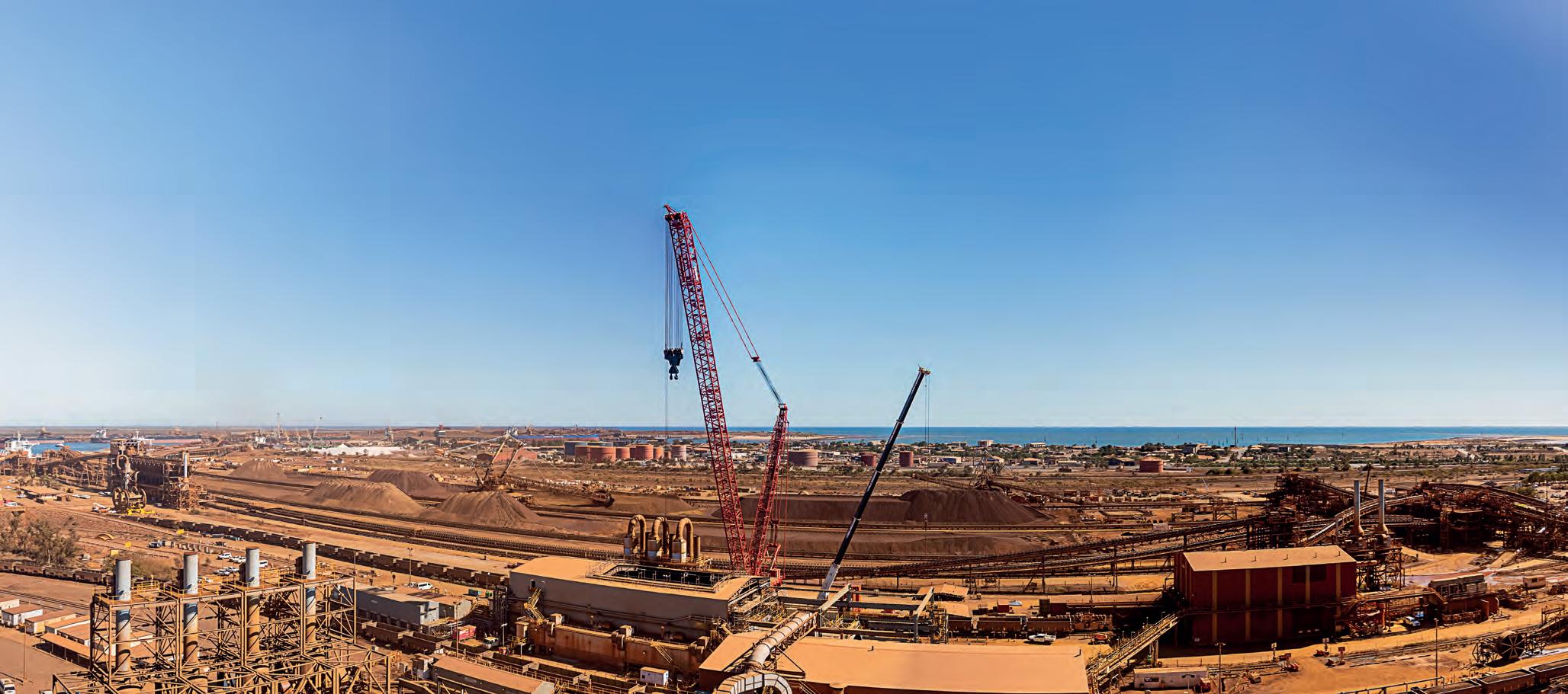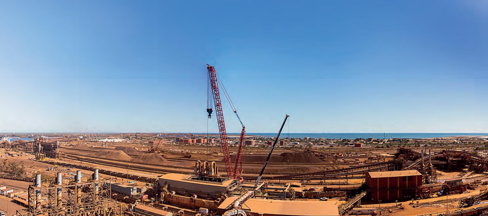Commissioned for the project and contracted through Monadelphous, Rubino boasts a 1600 tonne load capacity – equivalent to lifting three Boeing 747s – supported by 1155 tonnes of counterweight.