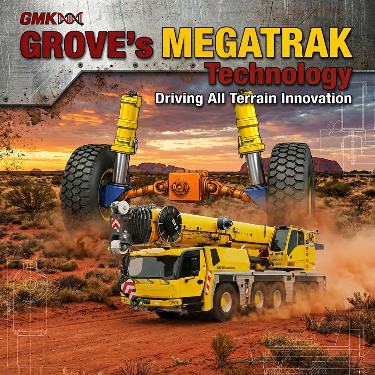A key reason for the global success the Grove GMK brand has experienced for the past 40 years is in main due to the unique features and benefits of the MEGATRAK® suspension system. John Stewart, VP and General Manager for Manitowoc Cranes Australia walks us through the development history of the Grove GMK brand.
